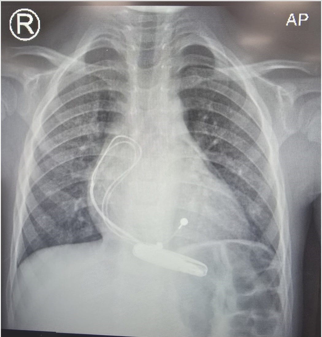 Figure 3: Post-pacemaker chest X-ray (AP view) showing appropriate lead positioning without complications.